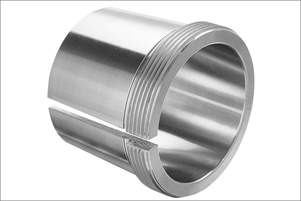 Withdrawal sleeves can be used to mount bearings with a tapered bore onto the cylindrical seat of stepped shafts. The sleeve is pressed into the bore of the bearing inner ring, which abuts a shaft shoulder or similar fixed component. The sleeve is located on the shaft by a nut or an end plate. KM or HM lock nuts (Lock nuts requiring a keyway) with appropriate locking devices are suitable. Lock nuts are not supplied with the sleeve and must be ordered separately.